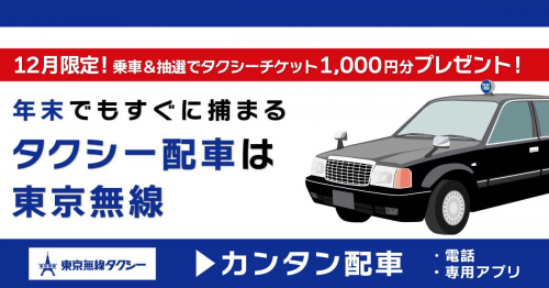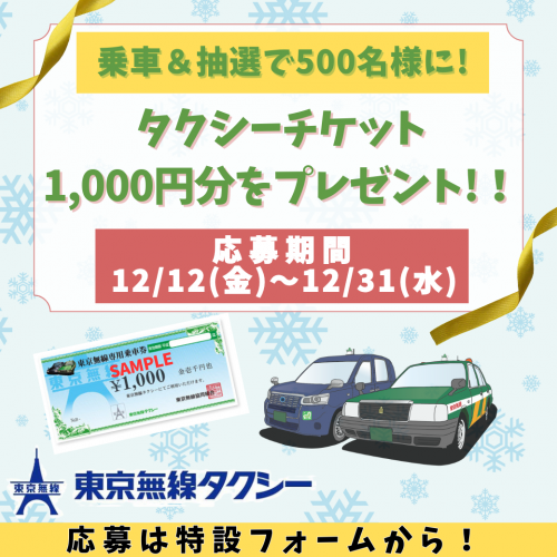 2025年12月12日(金)~12月31日(水)の期間中、東京無線タクシーをご利用の上、特設フォームからご応募